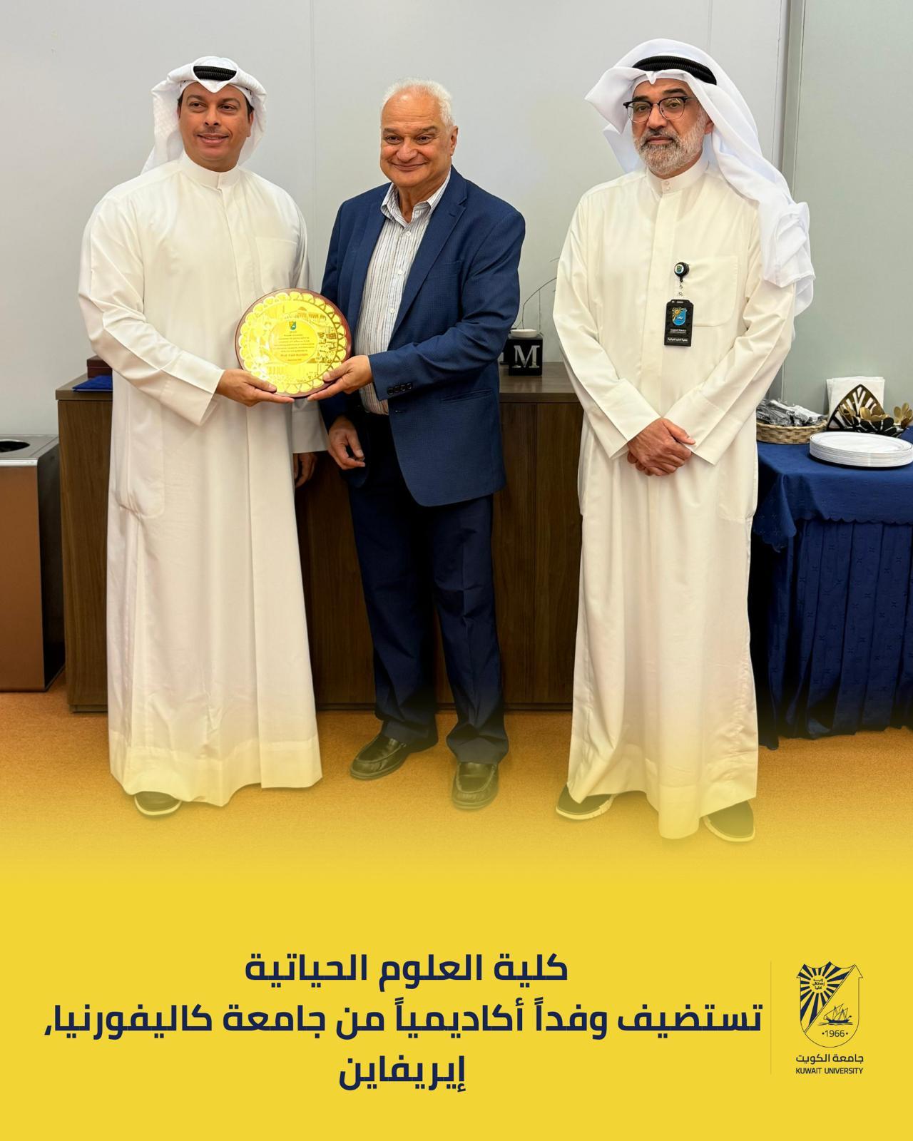 استضافت كلية العلوم الحياتية وفداً أكاديمياً من جامعة كاليفورنيا، إيرفاين كلية سامويلي للهندسة (UCI)، حيث اجتمع البروفيسور فادي قرداحي من UCIبعدد من الأقسام والمكاتب العلمية في جامعة الكويت ومع أعضاء هيئة التدريس في قسم علوم المعلومات بكلية العلوم الحياتية، وذلك لبحث آفاق التعاون البحثي والأكاديمي المشترك، ومناقشة إمكانيات الشراكة المستقبلية والمشاريع البحثية المشتركة.