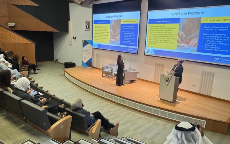 وعلى هامش هذه الزيارة، قدّم الوفد الزائر محاضرة تعريفية لطلبة كليات الحوسبة حول أهمية مواصلة الدراسات العليا في مجالات علوم الحاسوب وهندسة الحاسوب وعلوم المعلومات، حيث استفتحت السيدة آمي فام بكلمة تناولت فيها أهمية الدراسات العليا لفتح آفاق مهنية وأكاديمية جديدة، كما قدّمت عرضاً لبرنامج ماجستير الأنظمة المدمجة والفيزيائية الإلكترونية (MECPS)، متطرقةً إلى فرص التطوير المتاحة للطلبة.