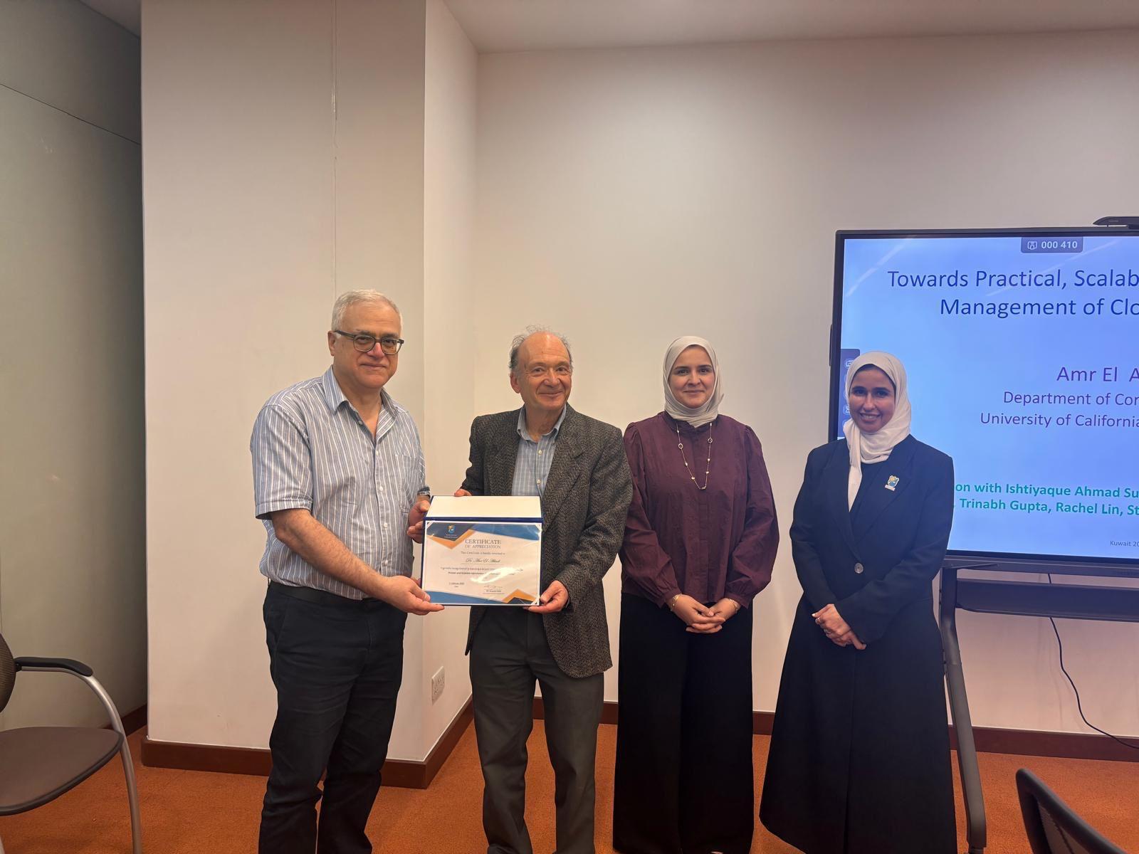 At the conclusion of the event, Prof. Amr El Abbadi was honored by Acting Head of the Information Sciences Department, Prof. Qasem Saleh, in recognition of his scientific contributions and valuable lecture, which enriched attendees and strengthened knowledge in the fields of data privacy and information security.