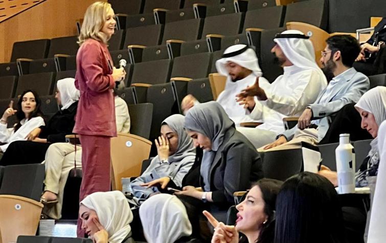 It is worth noting that the event featured three expert speakers who addressed diverse topics. Professor Safaa Al-Salem, a faculty member in the English Language Unit, discussed writing quality and the challenges students face in light of the development of artificial intelligence tools. She highlighted how to utilize the Copilot program, provided by Kuwait University, to support instructors and enable them to employ artificial intelligence in a thoughtful way that benefits students and enhances their learning experience.